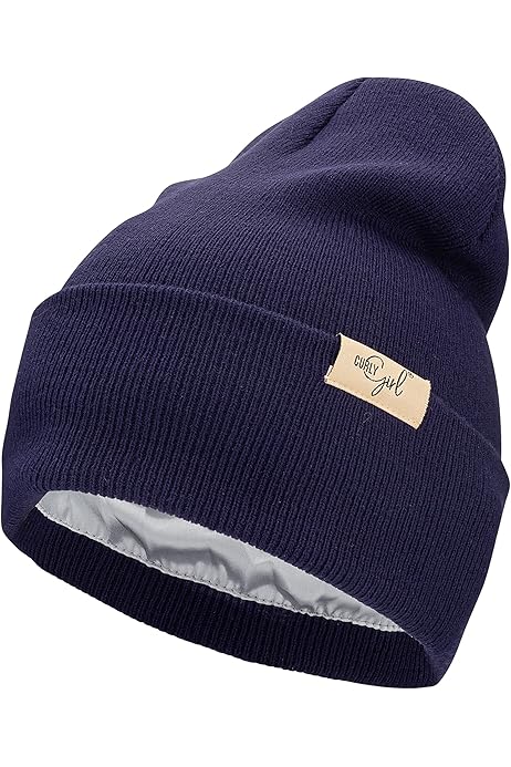 Curly Girl Satin Lined Womens Winter Knitted Beanie Hat Knit Cap Beanie Curly Hair Method Black At Amazon Women S Clothing Store